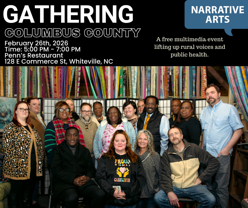 Join us for a multimedia evening sharing stories gathered from residents across Columbus County about their lived experiences with public health and local systems of care.