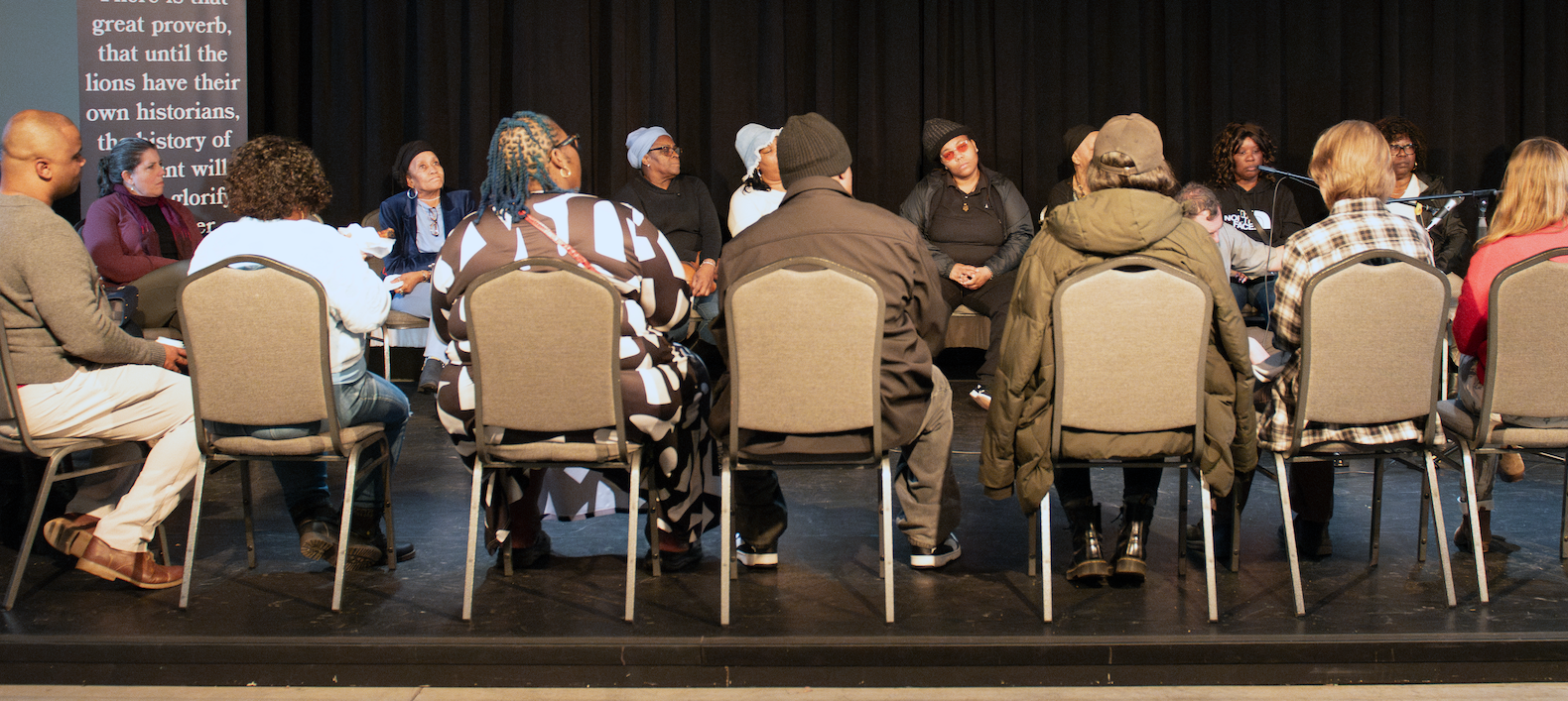 Narrative Arts later returned to Whiteville to share recorded stories from fourteen community members during a public listening event where residents gathered to hear and reflect on the stories together.
